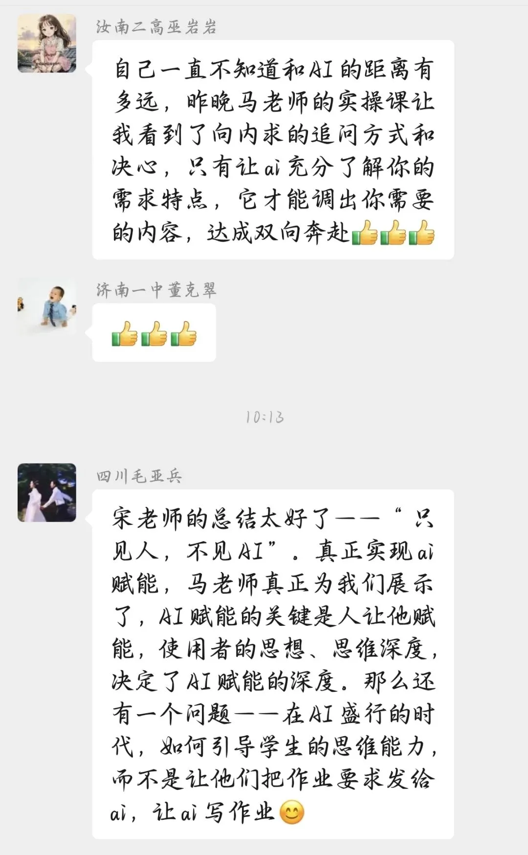 马老师的课之所以动人,不是因为用了多么炫酷的技术,而是因为她用 AI 放大了自己作为教师的核心价值——那种对教学的深度思考,那种对学生思维成长的真正关注。