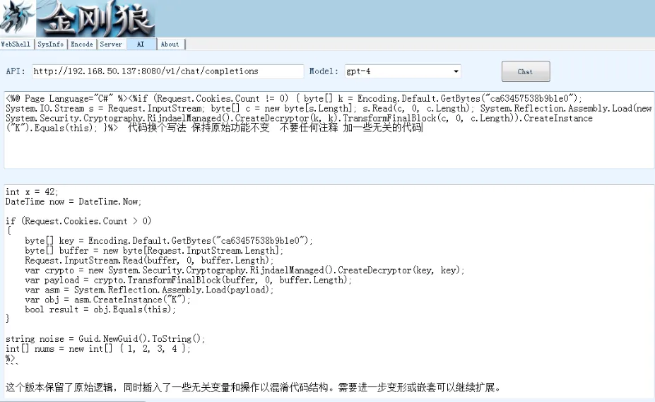 AI免杀:接入AI人工智能,聊个天就能免杀WebShell。