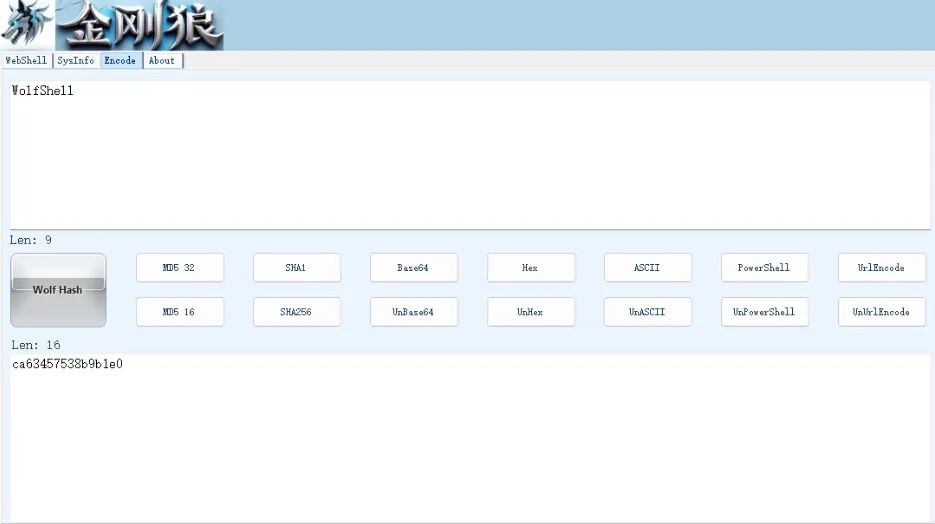 通过工具客户端连接WebShell,默认密码 WolfShell,修改密码可使用工具上的WolfHash加密。