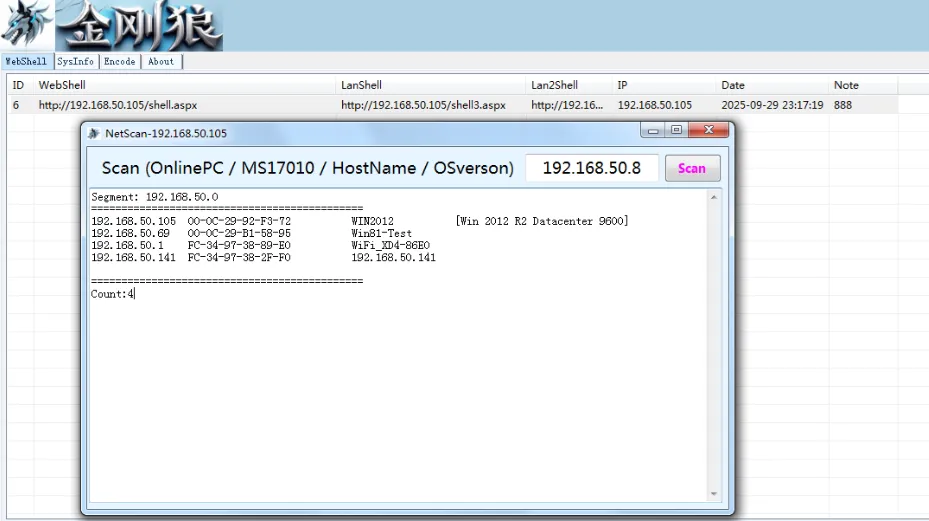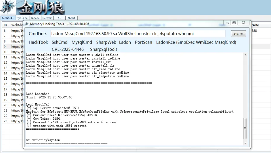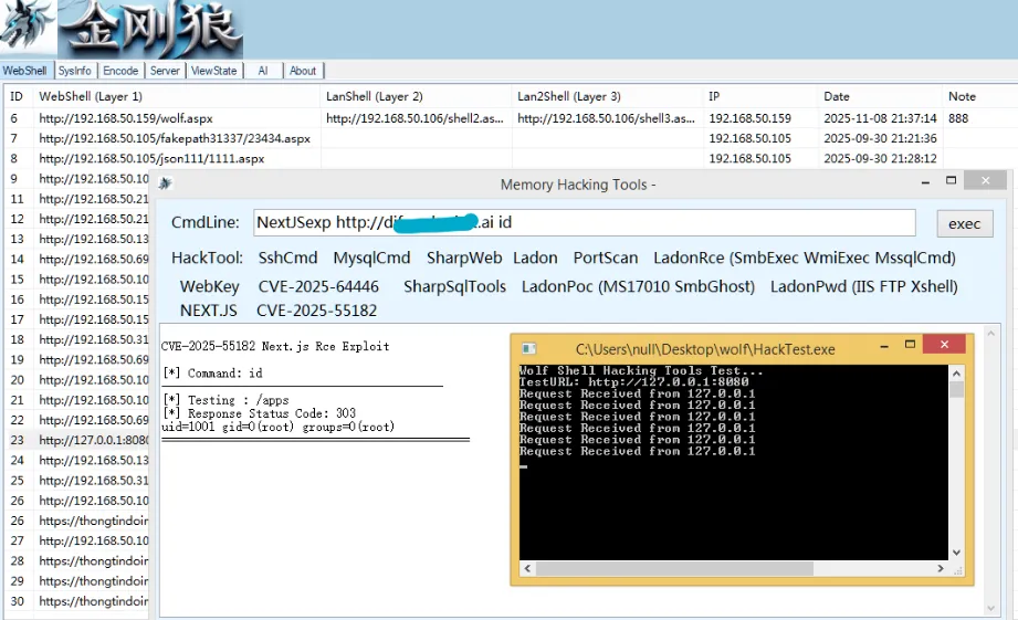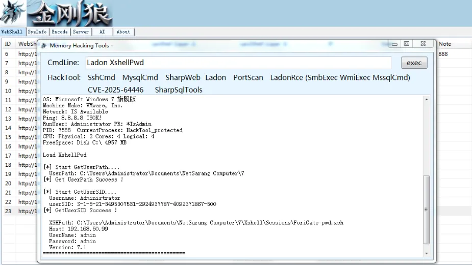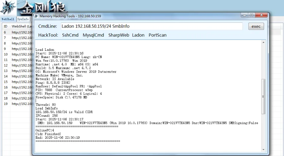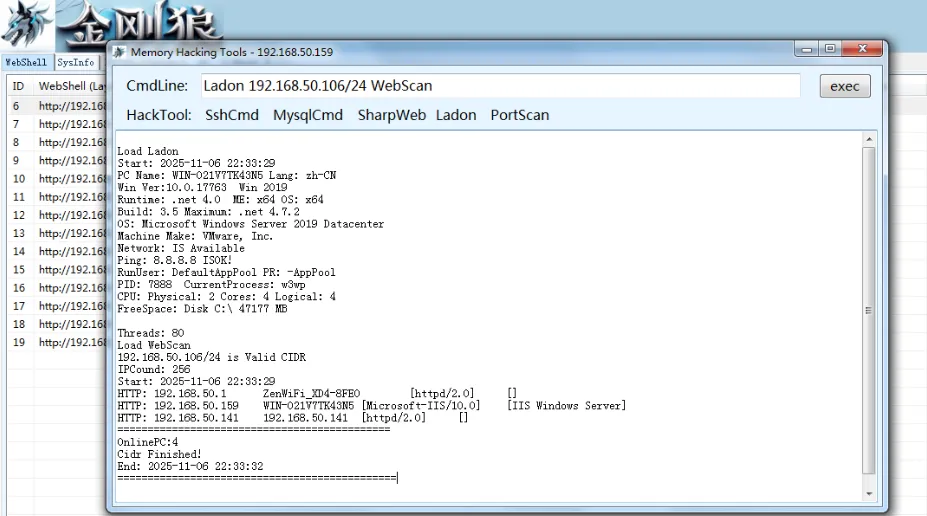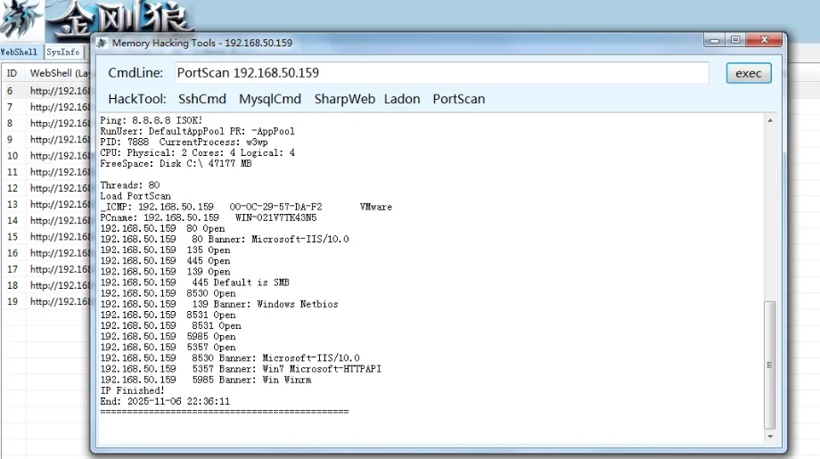 Hacking后渗透:通过已控的 WebShell 在内存中加载渗透工具,无需部署代理或配置端口转发,即可实现便捷高效的内网横向渗透。