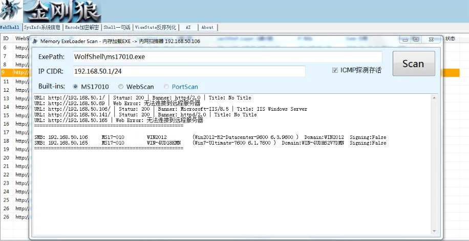 内存加载扫描器:仅需编写单个IP的.NET程序,即可通过该模块实现内存加载的C段扫描。