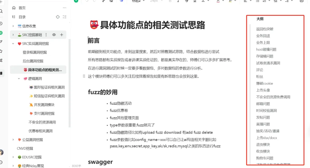 1、src挖掘思维导图,信息收集思维导图,edusrc挖掘思维导图,以及后续的红队&面试思维导图&自己网安笔记等持续更新2、2025-2026的edusrc实战报告包含证书站和非证书站以及2025之前的各种优质报思路分享3、各种src报告思路分享(内部&外部)4、分享各种src挖掘&edusrc挖掘培训资料&视频5、不定期分享通杀、0day6、有圈子群可以技术交流以及不定期抽取证书&免费rank7.分享各种护网资料各家安全厂商讲解视频&精选实战面试题目8、各种框架漏洞技巧分享9、各种源码分享(泛微、正方系统、用友等)10、漏洞挖掘工具&信息收集工具&内网渗透免杀等网安工具分享11、各种ctf资料以及题目分享12、cnvd挖掘技巧&CNVD资产&src资产分享&补天1权重资产分享&fofakey共用13、免杀、逆向、红队攻内网防渗透等课程分享14、漏洞库&字典以各种内容不在一一说明15、cisp-pte/pts&nisp一级&nisp二级&edusrc证书内部价格15、如果有漏洞挖掘问题或者工具资料需求可以找群主(尽量满足)