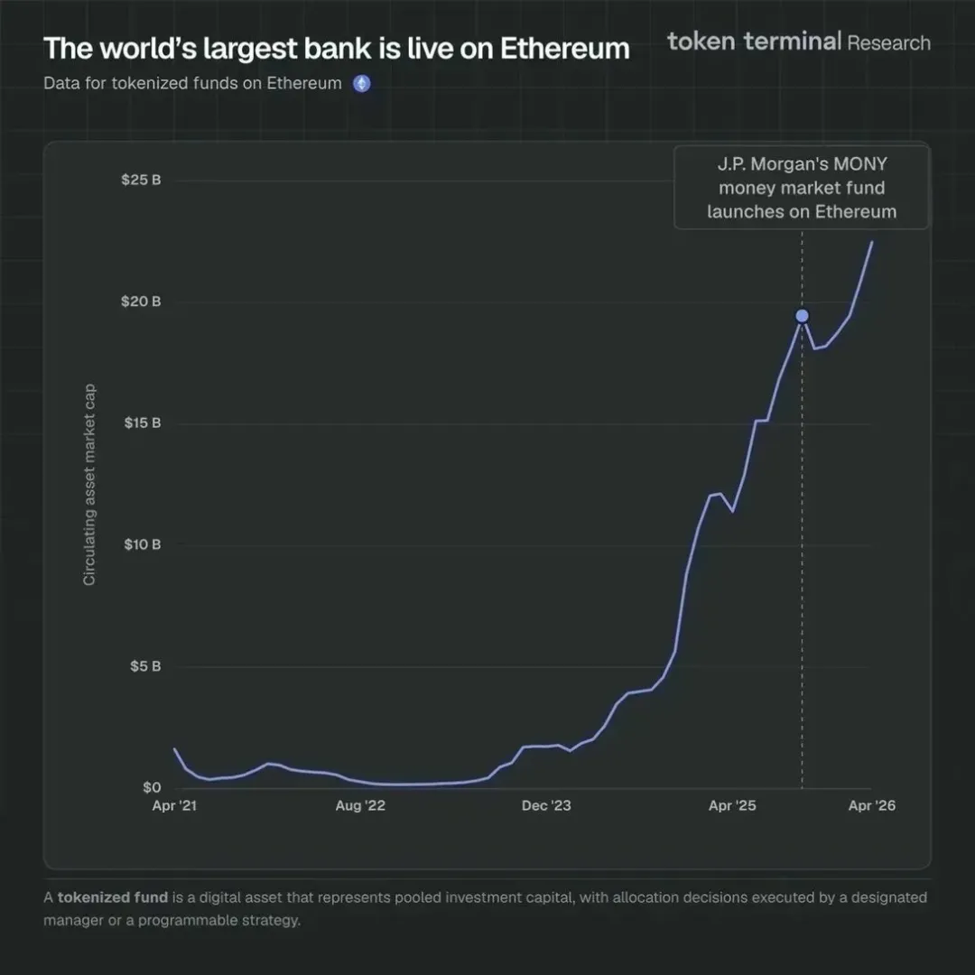 第三,机构扎堆。 贝莱德的BUIDL、富兰克林邓普顿的链上货币基金、摩根大通的MONY基金……全部选择在以太坊上发行。225亿美元代币化国债,71.9%在以太坊。机构选的地方,就是最安全的地方。