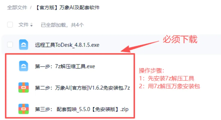 (3)再用7z解压万象安装包,找到万象AI程序,双击会自动更新,完成以后重新打开登陆即可