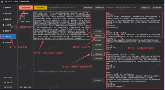 操作步骤:[创作工具]--[通用推理模式]--[粘贴原文小说]--[4.0版短剧生成]--[推理完成]--[新建任务]