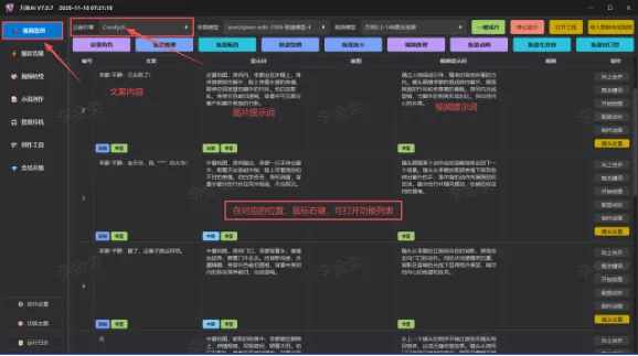 (2)跳到视频原创,自动加载分镜表,特别注意:云端引擎必须选择【Comfyui】,如下图