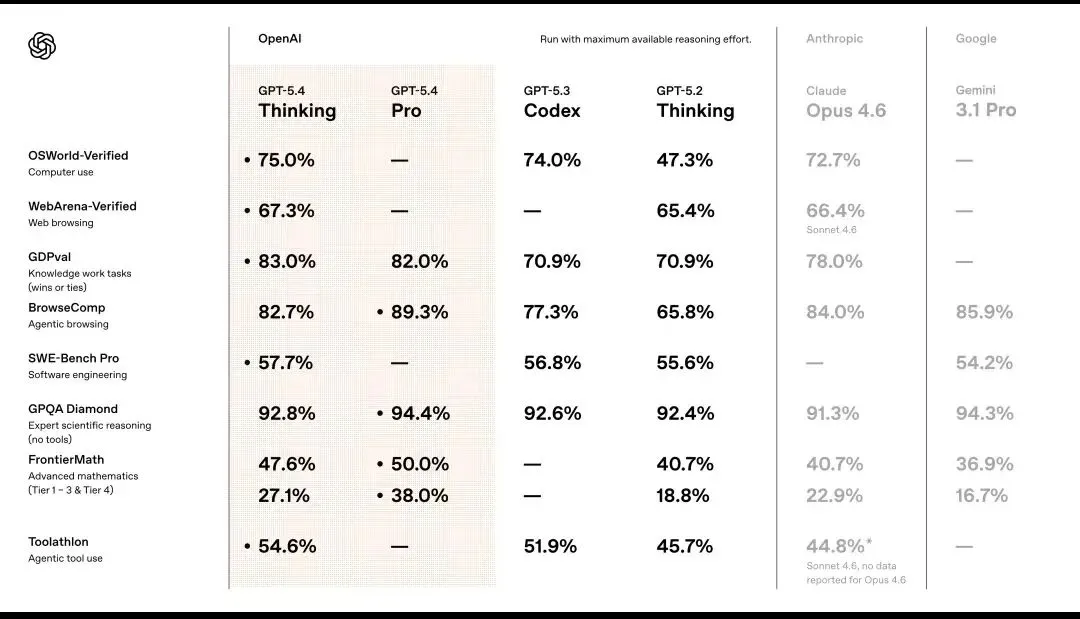 OpenAI用GPT-5.4告诉所有人:在通往AGI的路上,它依然是最不能被忽视的那个玩家。