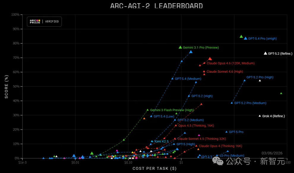 ARC-AGI-2抽象推理跑出83.3%新高,Gemini 3.1 Pro的77.1%、Opus 4.6的68.8%,全部踩在脚下。