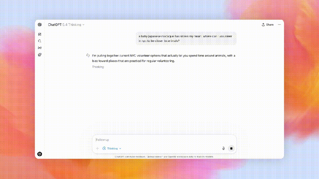 在实际使用中,这意味着GPT-5.4 Thinking更擅长回答需要从网络多源头整合信息的问题。