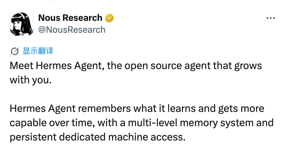• NousResearch 发布推文:https://x.com/NousResearch/status/2026758996107898954