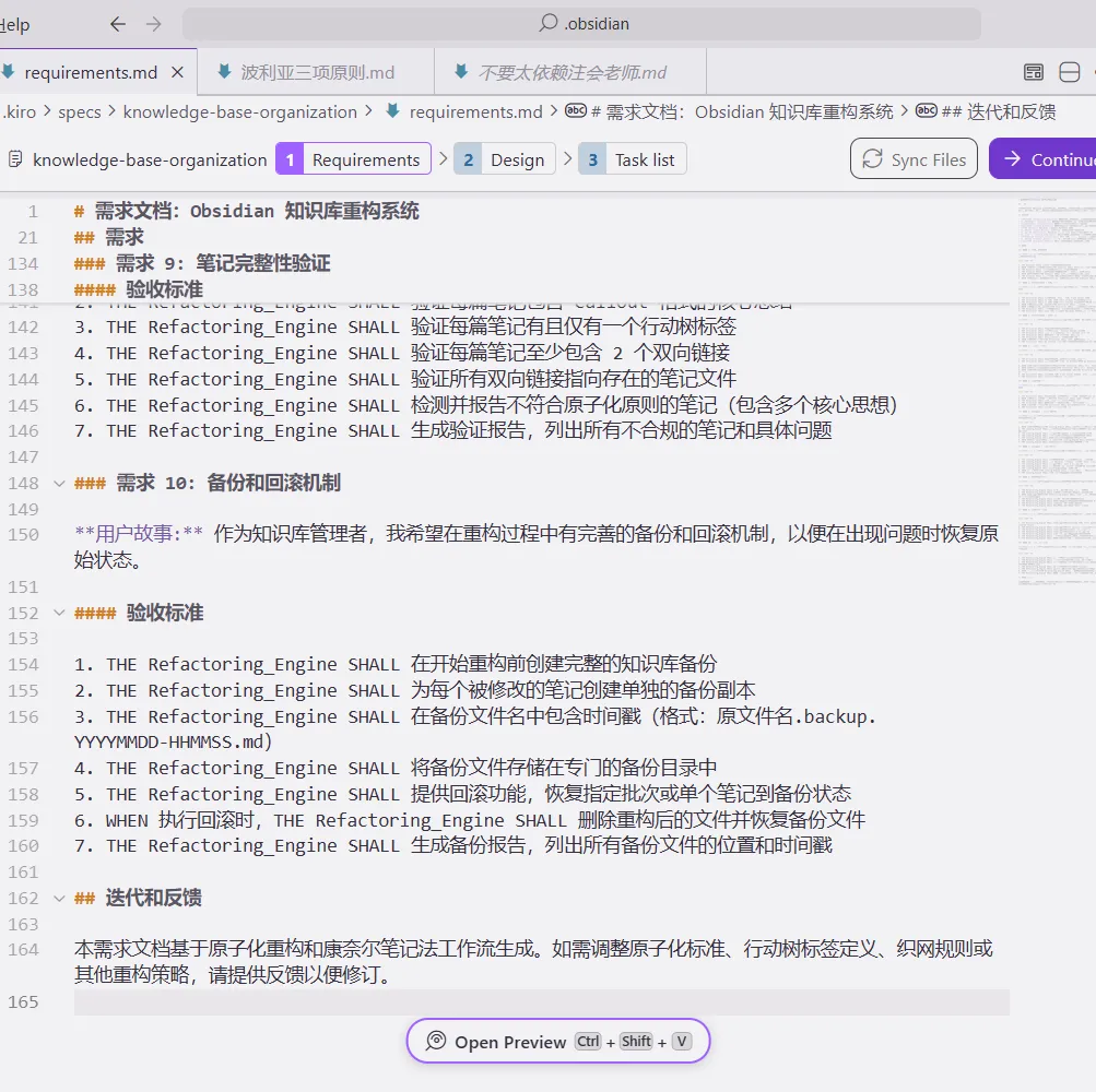 使用Kiro打开你的OB笔记库,给它发送以下提示词: