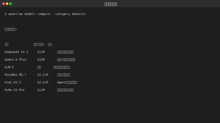 性价比型 | DeepSeek, MiniMax, MiMo | $1/M |