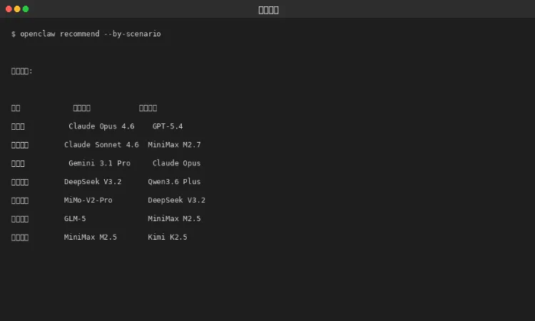 日常对话 | Claude Sonnet | MiniMax M2.7 | 综合均衡 |