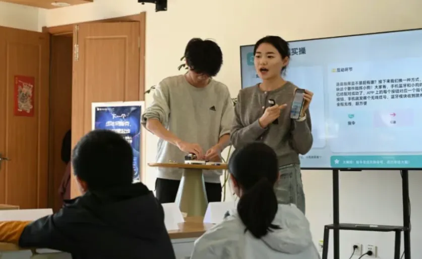 2026年3月29日,中国计量大学大学生走进社区,开展AI公益课程,带领孩子们探索机器人,融合理论与实践,激发创新潜能。