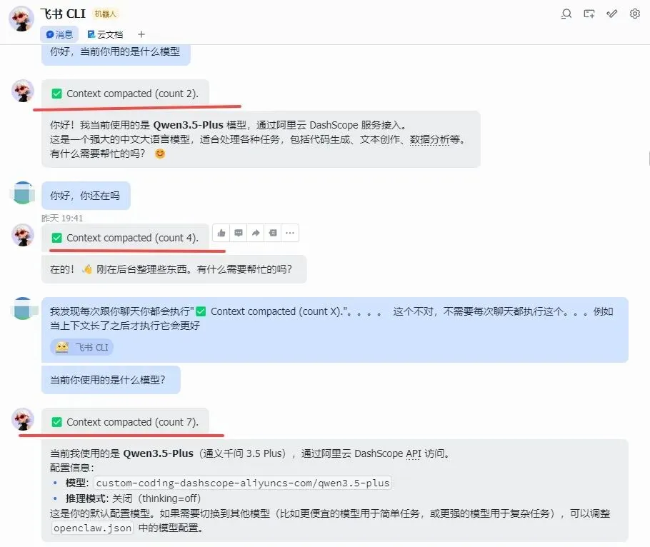 上面截图中每次聊天都会出发上下文压缩,根据分析得到的结果如下: