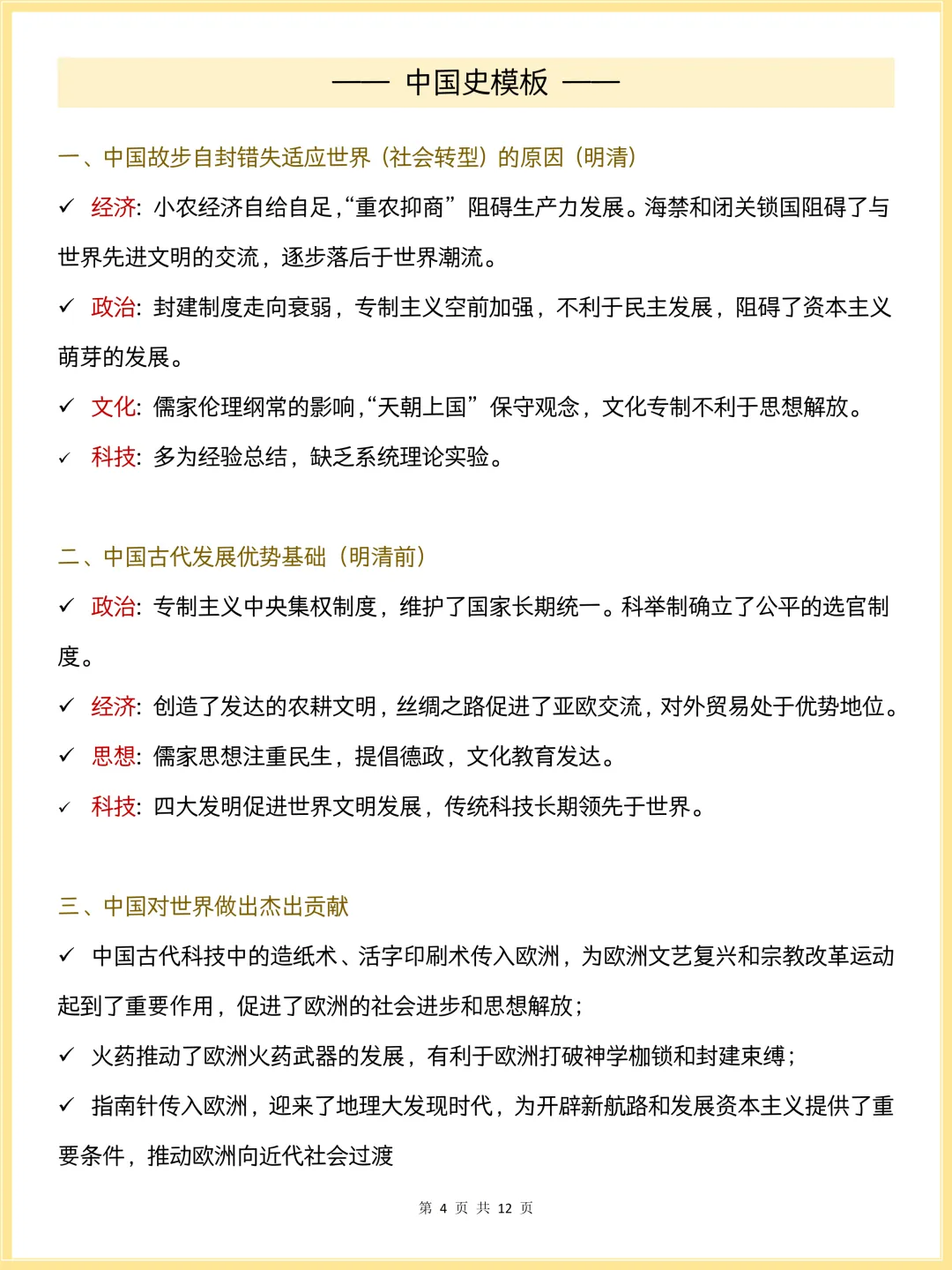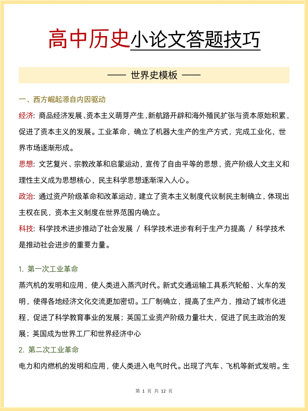 这份《高中历史小论文答题技巧》整理了世界史、中国史完整答题模板,从西方崛起、世界格局到中国近代化、中外对比,帮你搭建清晰答题框架,精准踩中得分点,轻松搞定历史小论文,冲刺高分!
