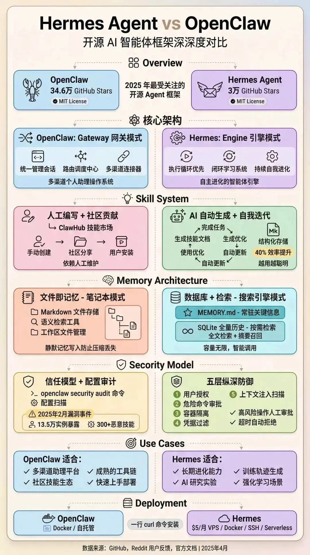 Hermes 的核心优势在于其独特的记忆与技能进化系统。传统代理往往面临“失忆”问题,而 Hermes 通过三层记忆架构,实现了从会话级到持久级的全面记忆管理。此外,其技能系统具备“自进化”能力,能够根据执行结果自动更新优化,无需人工频繁干预。
