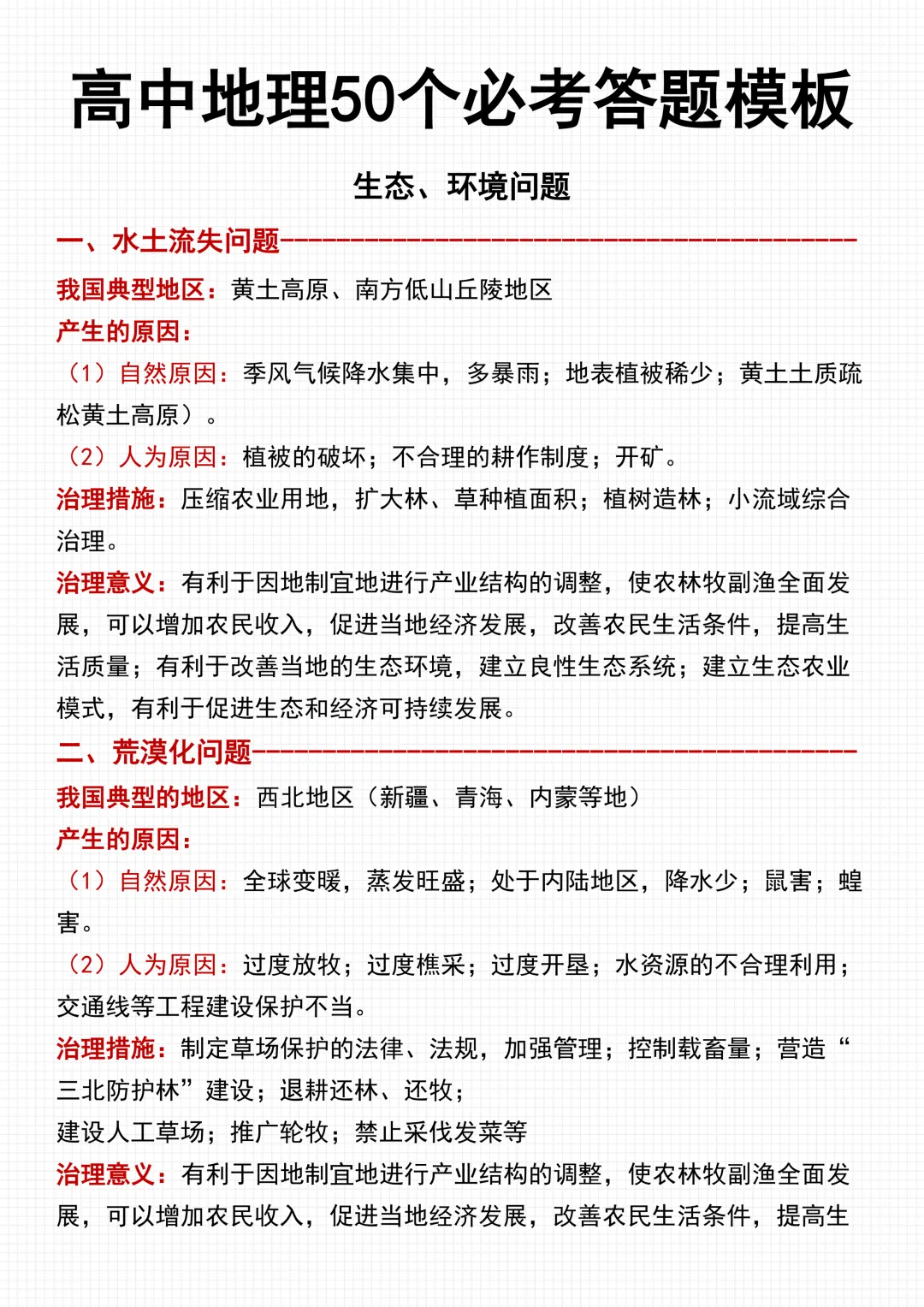 所以今天学姐给大家整理了高中地理50个必考答题模板,吃透它,90分不是梦!