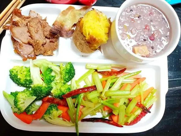 比如你是个想减肥的上班族,它会给你做这种适合中国胃的减脂餐:有酱牛肉、杂粮粥、清炒时蔬,不用啃草,吃饱了还能瘦。