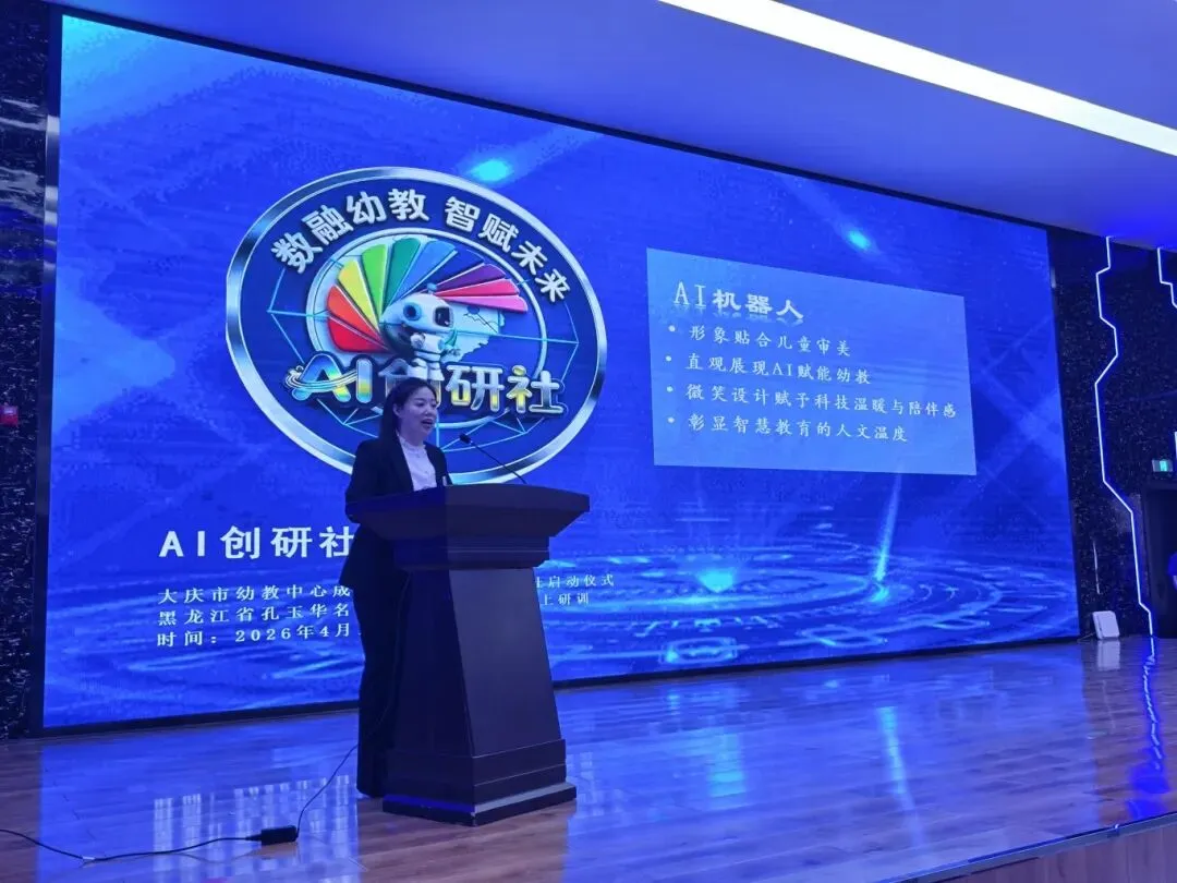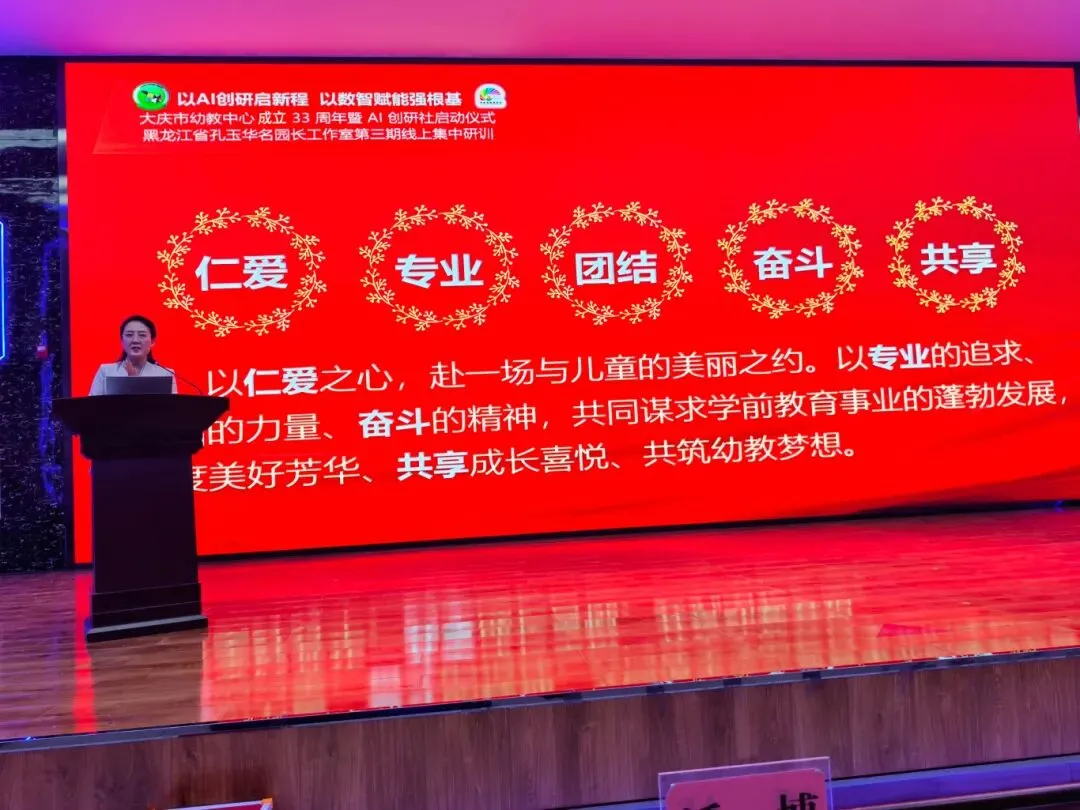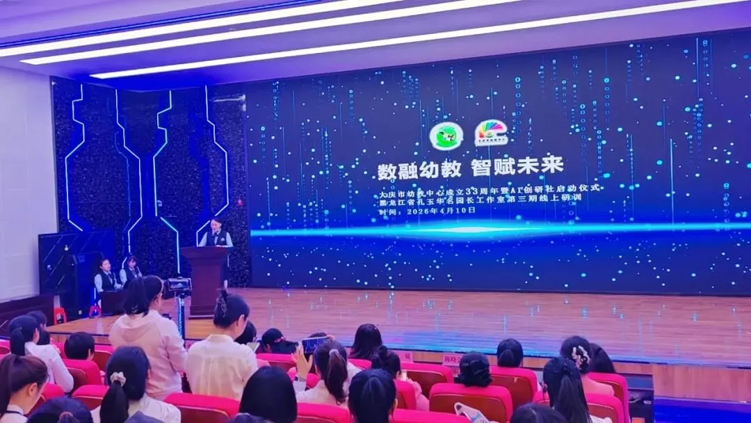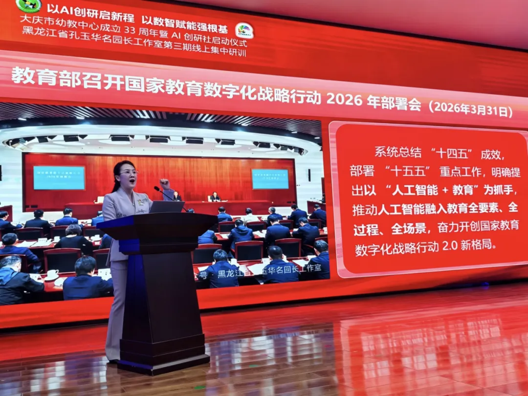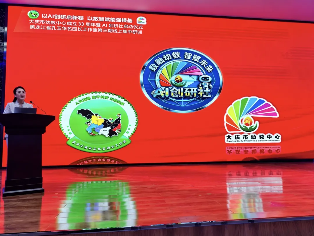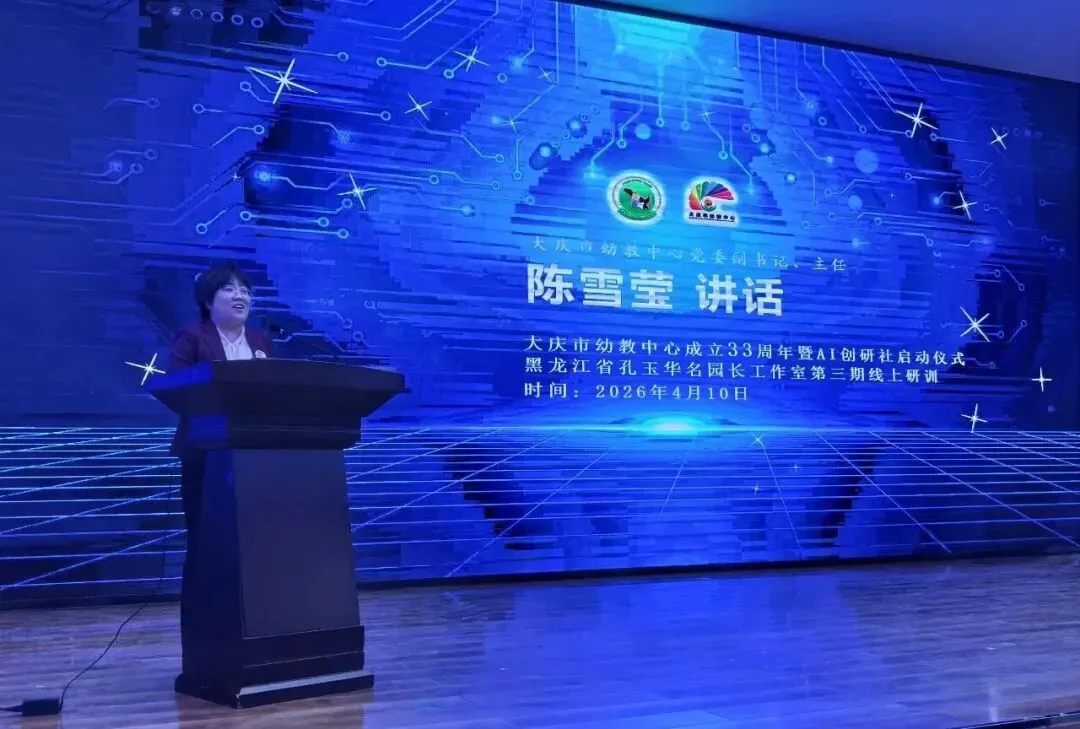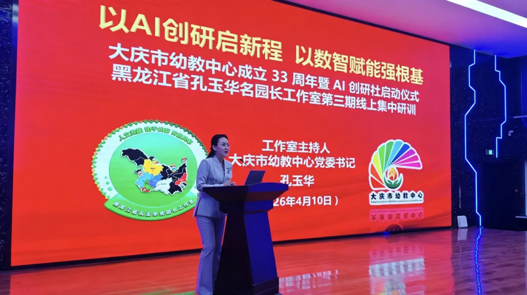 初心逐梦践使命,智赋未来启新程。时值大庆市幼教中心成立33周年之际,为深度推进“AI+幼教”融合发展,充分发挥省孔玉华名园长工作室的示范引领作用,2026年4月10日17时,大庆市幼教中心隆重举行AI创研社启动仪式,开展专题讲座,并同步进行省名园长工作室线上集中研训。