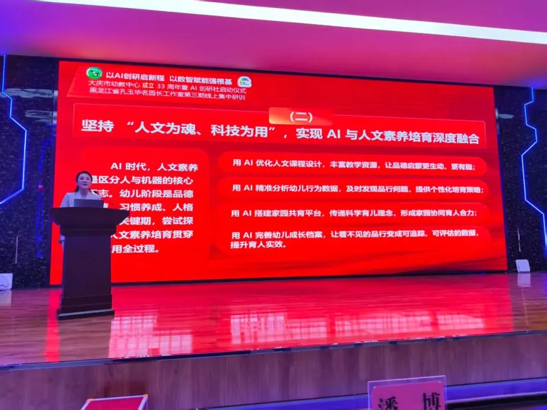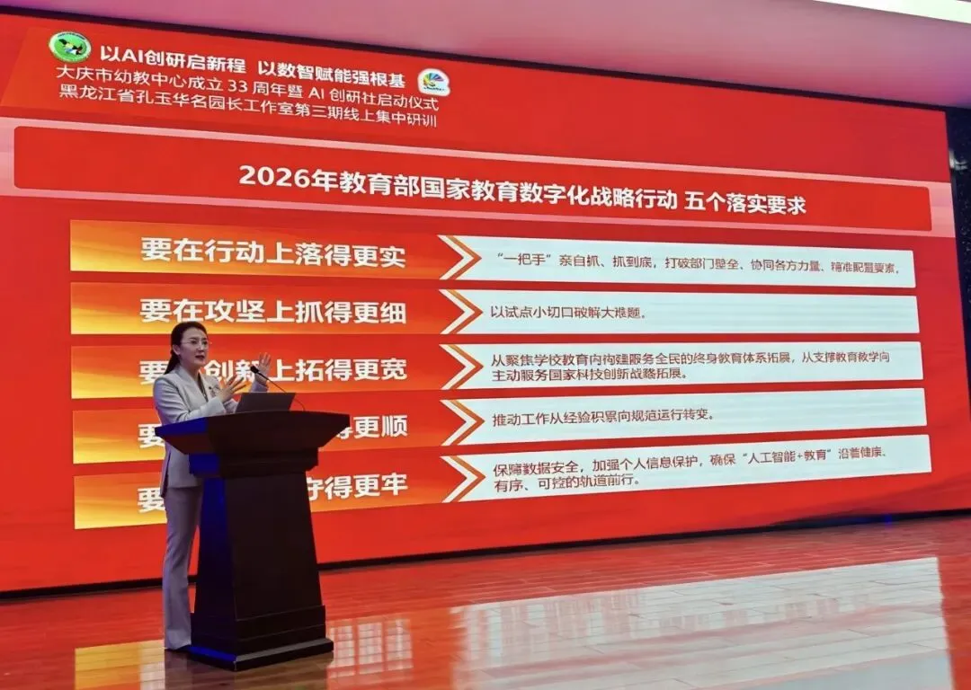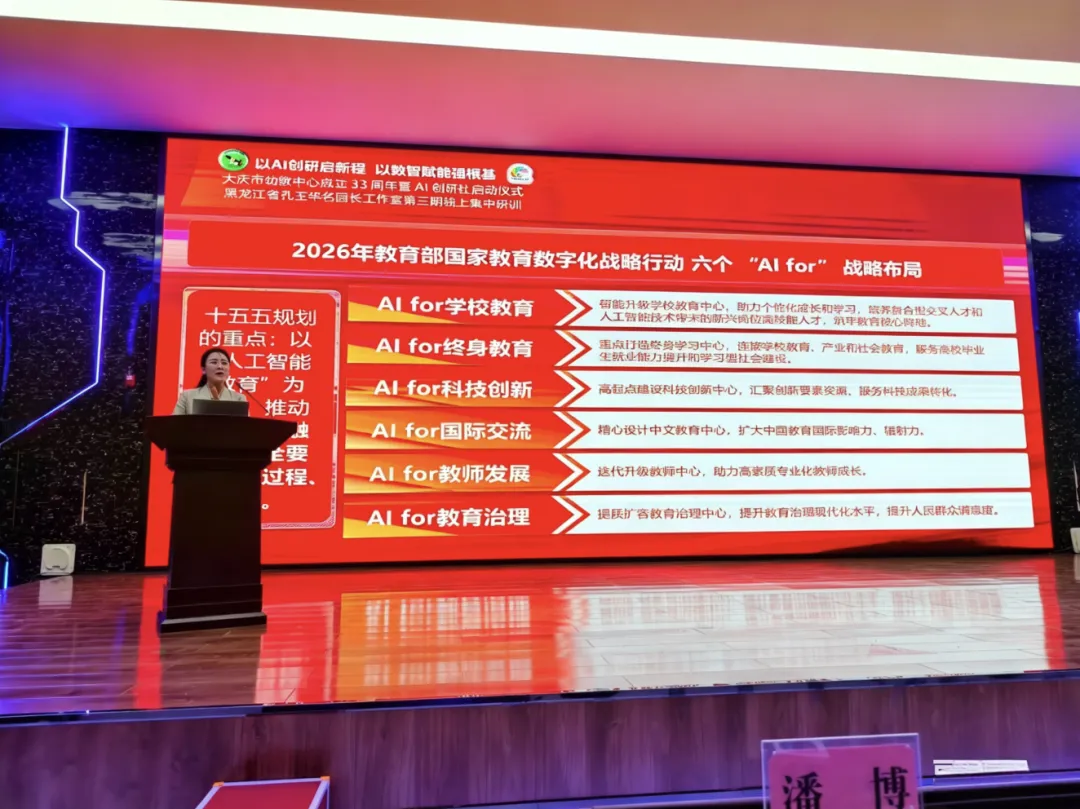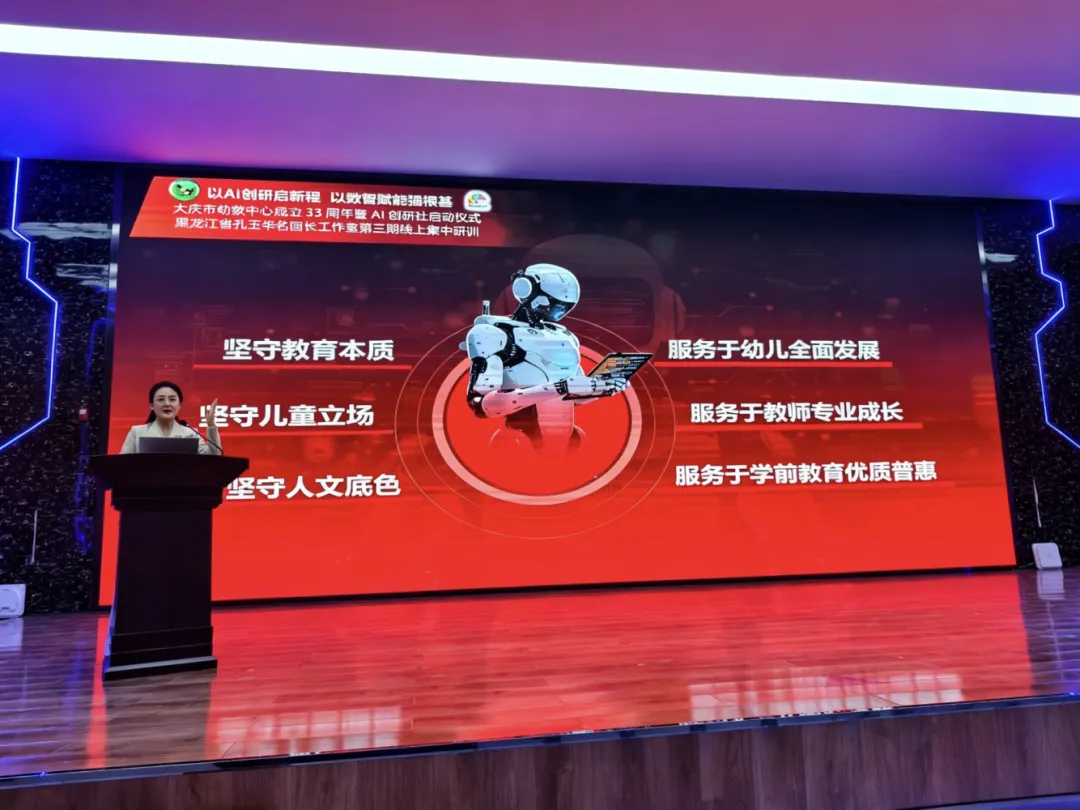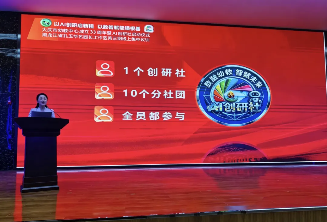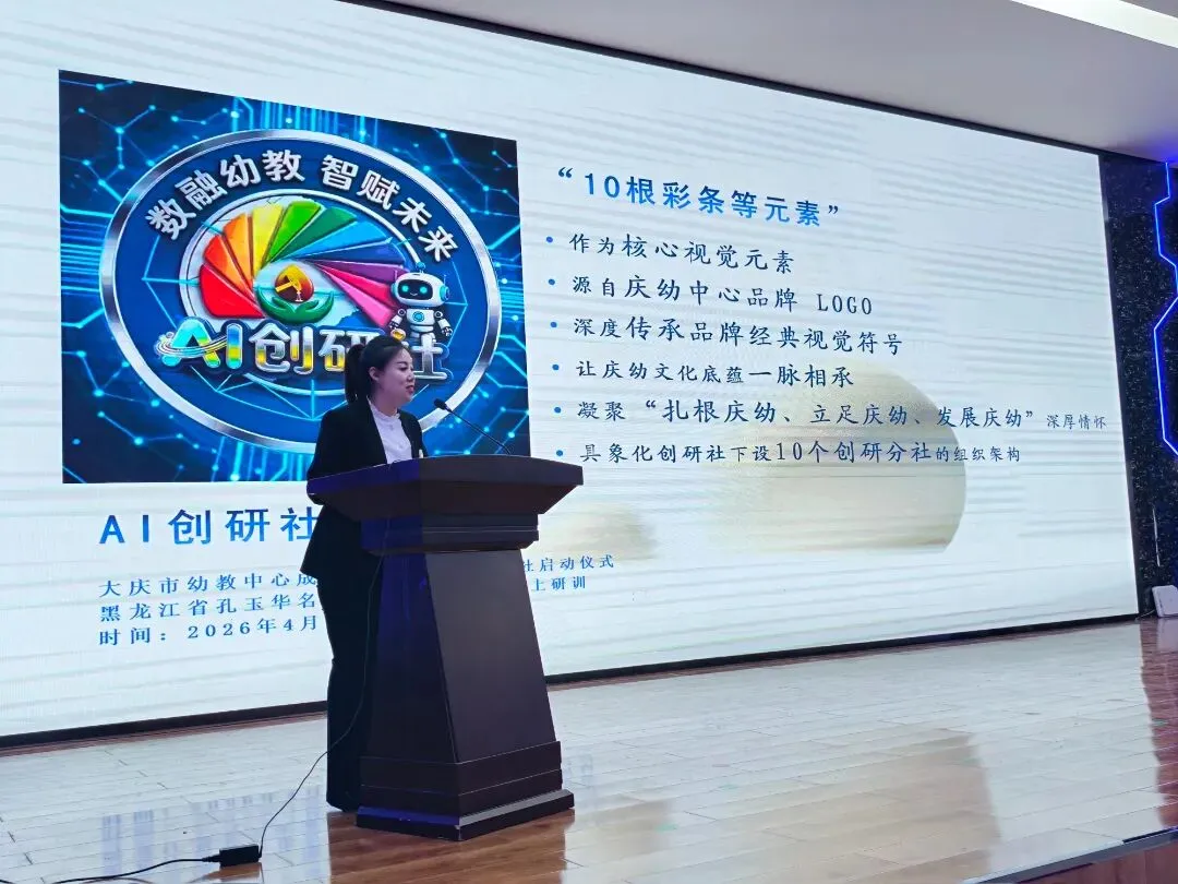 初心逐梦践使命,智赋未来启新程。时值大庆市幼教中心成立33周年之际,为深度推进“AI+幼教”融合发展,充分发挥省孔玉华名园长工作室的示范引领作用,2026年4月10日17时,大庆市幼教中心隆重举行AI创研社启动仪式,开展专题讲座,并同步进行省名园长工作室线上集中研训。