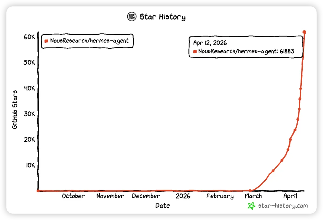 Hermes 是一个开源的 AI Agent 框架,背后是 Nous Research(截至目前,GitHub 61.9K stars)。