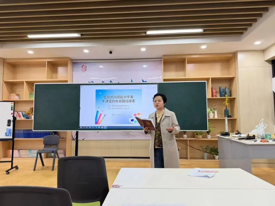 为深入探索生成式人工智能技术与小学美术教育的深度融合路径,推动美育教学创新发展,4月9日上午,由椿芳联盟片区组织的“生成式AI赋能小学美术课堂的有效路径探索”主题教研活动在钟楼区第二实验小学顺利开展。区内各小学美术教师代表齐聚一堂,共同观摩研讨、交流经验,开启了一场科技与艺术碰撞的美育盛宴。