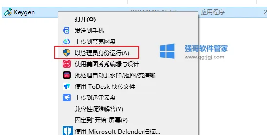 13.右击【Keygen】选择【以管理员身份运行】