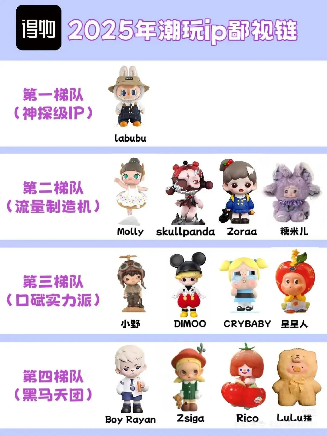时至今日,IP的发展随着社会的变化而变化,呈现出多元化、个性化的趋势,多了潮玩(Labubu、Molly为首)、游戏 (原神等)、表情包(Chikawa 、一二布布)等类型IP,甚至AI漫剧也开始衍生IP形象。