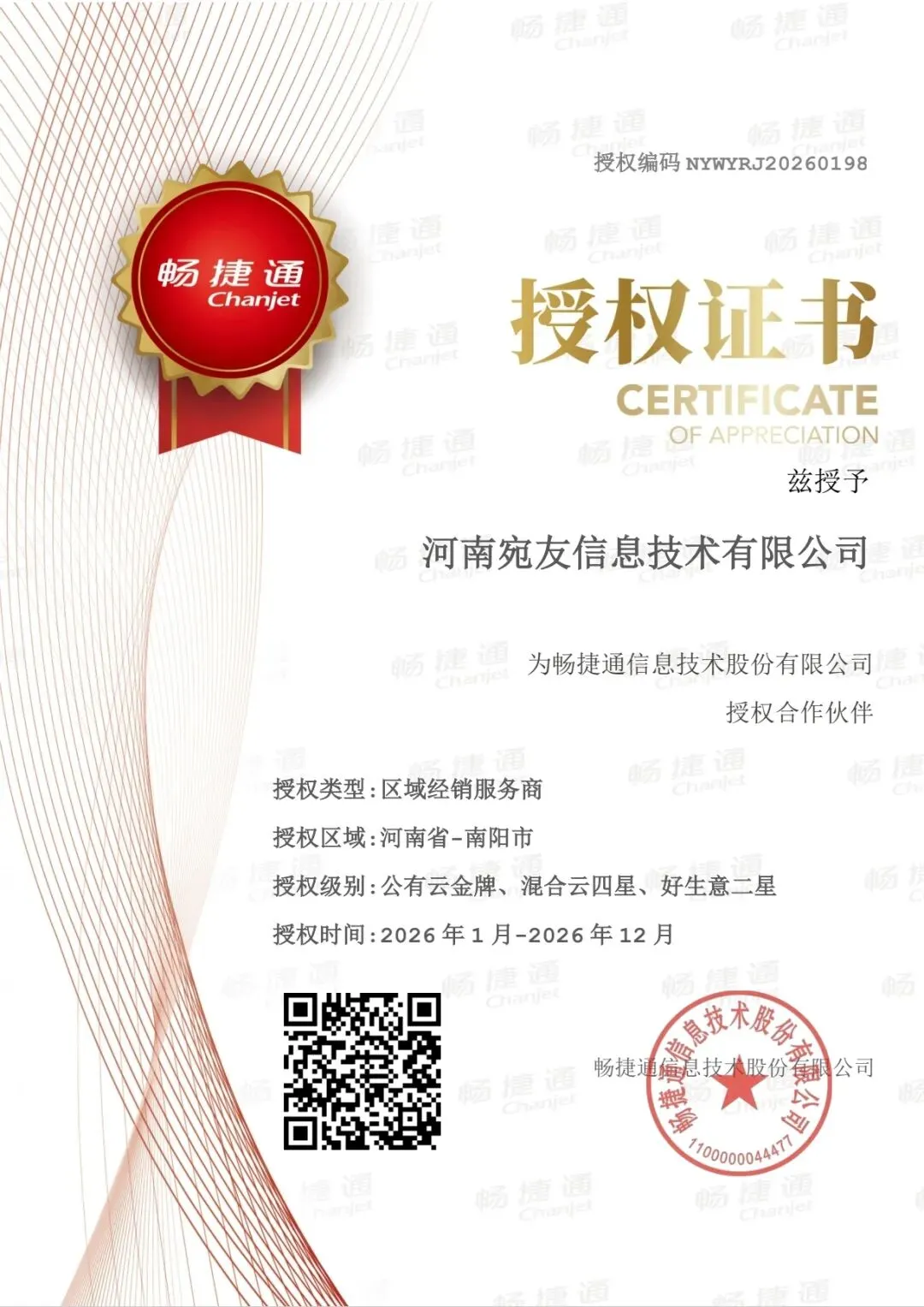 河南宛友信息技术有限公司,是用友在豫南地区的官方授权核心服务商,已通过用友官方严格审核,资质齐全。