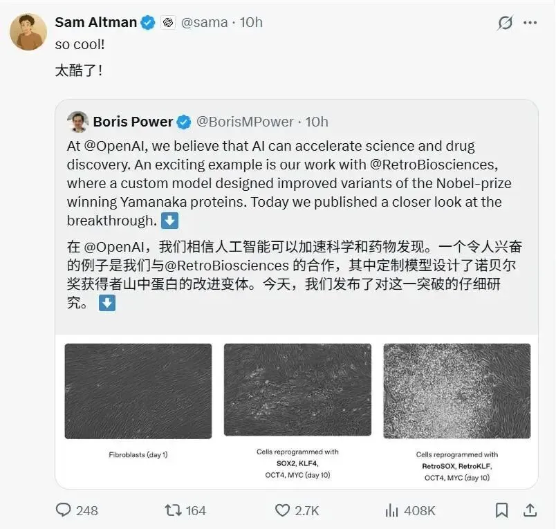 4月7日,OpenAI CEO奥特曼在印度AI峰会上抛出重磅观点:AI正以惊人速度压缩科学发展周期,原本需要几十年才能完成的科学研究,如今在AI的辅助下,只需几年就能实现。据他透露,GPT-5.2已成功为多篇顶级物理期刊论文提供核心研究思路,在数学、材料科学、生物工程等领域,AI将研发效率提升了10至100倍,成为人类科学研究的“超级合作者”。