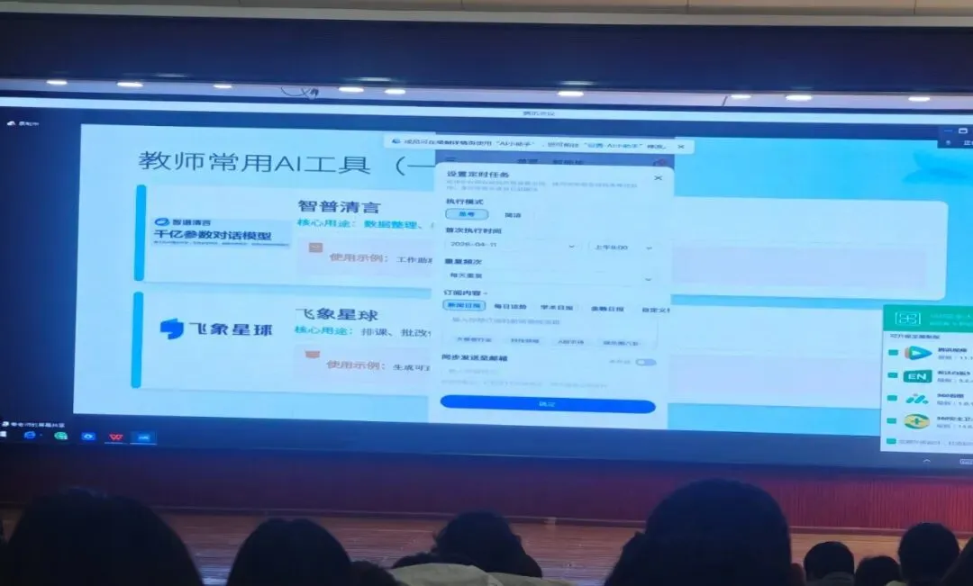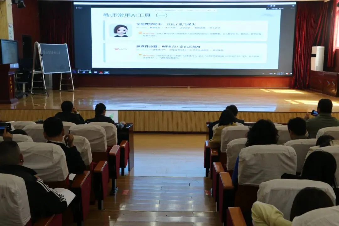 4月11日上午,毕节二十二小全体教师齐聚道德讲堂,迎来了一场别开生面的人工智能专题培训。本次活动由民盟宜昌市委倾力支持,特邀宜昌科技职业学院讲师、民盟宜昌市委伍家岗区教育支部副主委秦懿琪开展《数字赋能育新人,智启课堂促成长》专题讲座,为我校教师打开了智慧教育的新视野。