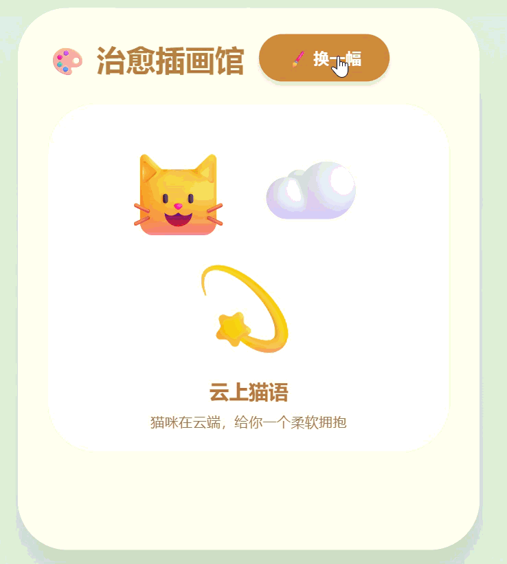 8幅治愈插画随机展示"麦田与风"、"云上猫语"、"星夜梦境"……每幅画都藏着一个柔软故事。
