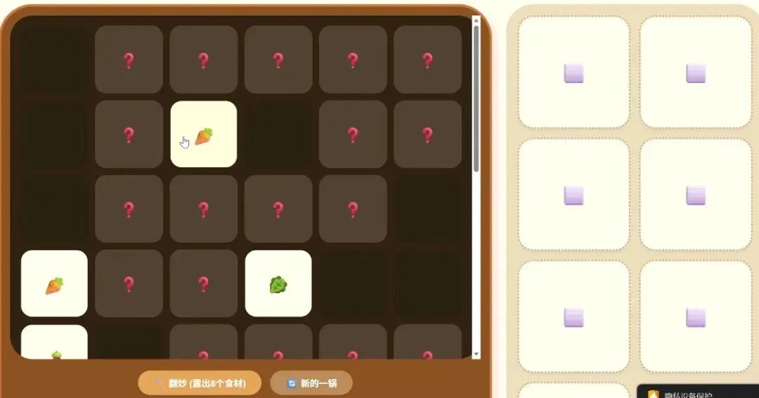 抓大鹅式消除玩法,5分钟限时挑战,点击食材入框,满3自动消除,完美通关 +10 积分!