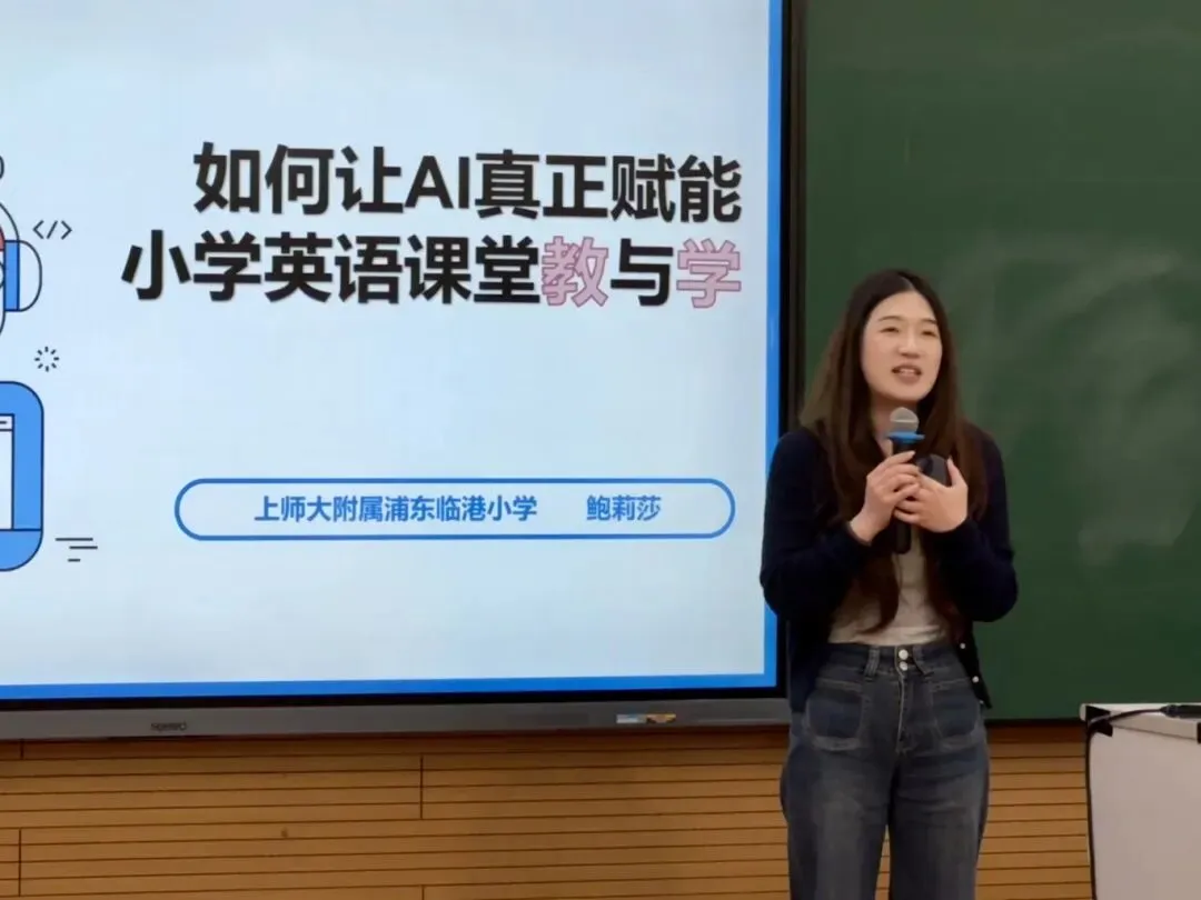 浦东新区四年级教学中心组成员、上师大附属浦东临港小学的鲍莉莎老师围绕如何让 AI 真正赋能小学英语课堂的教与学开展专题微讲座,并结合两节课例进行细致点评。她指出,华菲老师的词汇课将AI点状融入信息查询,为词汇学习搭建真实语境,实现真交际、真运用。顾黎佳老师的课堂实现AI全程支架式运用,深度服务探究全过程。但是在教学过程中,人机分工清晰,保护了学生思考与表达的空间。鲍老师总结AI赋能的要点:AI 是信息服务员;AI技术需自然无痕地嵌入,保留学生思维并助力差异教学;教师需做到人机协同,方能真正为课堂提质增效。
