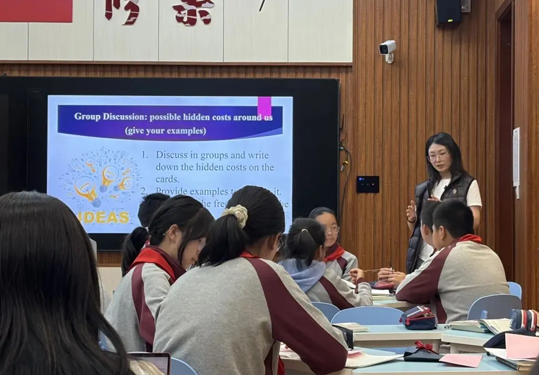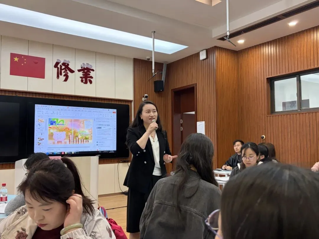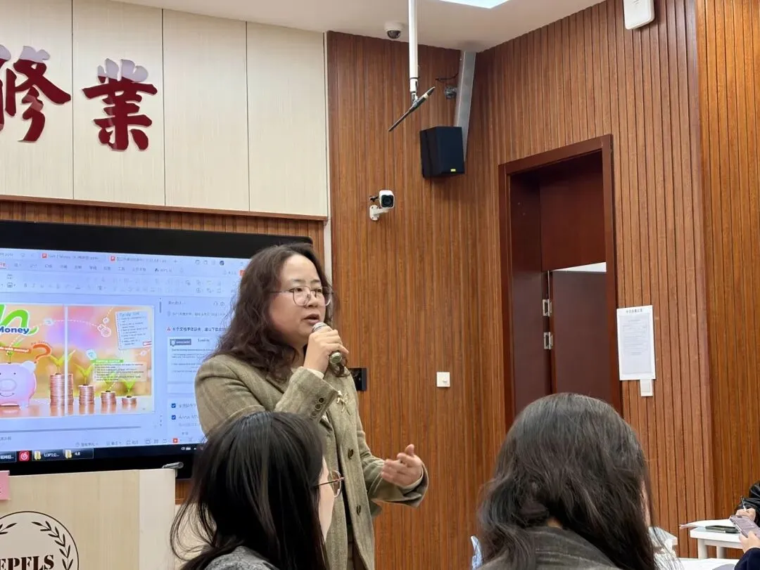 教学展示环节,两位教师呈现了两节聚焦八年级下册Unit 3《Money》的优质公开课。孙方燕老师执教Viewing and listening:Daily use of money,以多模态海报、真实对话为载体,将购物、点餐、支付等日常消费场景融入课堂,聚焦人物关系推断听力策略,结合money相关动词搭配教学,引导学生在语境中运用语言、树立理性消费观。隋艺老师带来阅读课Is there such a thing as a free lunch?,以观点式博客文章为依托,拆解文本论证结构,深入浅出讲解交易、隐性成本等经济学概念,通过设问、举例、对比等手法,助力学生理解“天下没有免费的午餐”的核心内涵,实现语言学习与思维训练的融合。