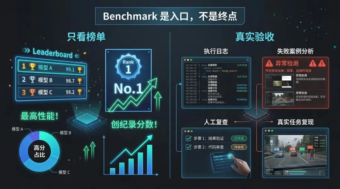 不是。榜单当然有用。没有 benchmark,连最基础的横向对比都很难做。一个模型到底有没有进步,一个 Agent 到底有没有比上一代更稳,总要有公开、可复现、可讨论的测试集。