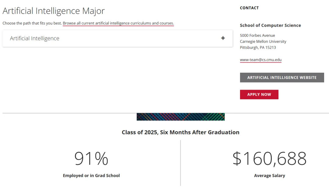 这也是为什么,很多家庭会把 CMU 看成一所“结果导向”非常强的学校。它不是只会教你“会什么”,而是告诉你“能赚什么、能做什么、能解决什么问题”。比如 Information Systems 这个专业,它把 technology、business、humanities、social sciences 结合起来,训练学生用技术解决组织和社会问题;而 2025 届本科这一方向毕业 6 个月后的平均薪资已经到 115,027 美元。对于喜欢交叉学科、又不想把自己锁死在纯技术赛道的学生来说,这种项目就特别有吸引力。