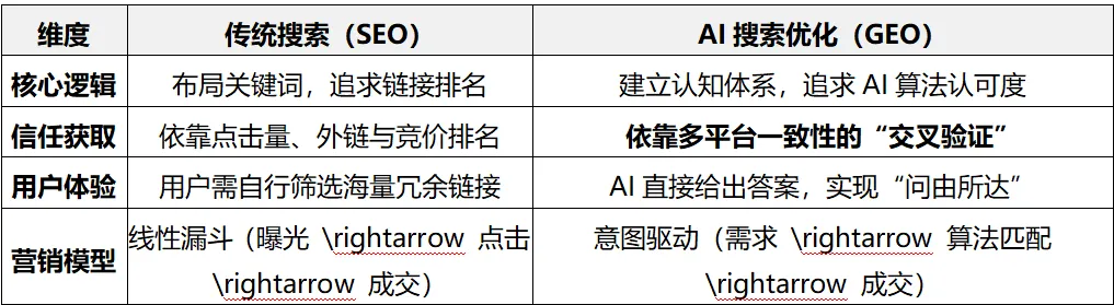 在传统互联网营销时代,企业习惯于“漏斗式”营销:通过海量曝光吸引点击,再引导至咨询。然而,在AI搜索引擎(GEO)时代,这种传统的线性逻辑正在终结。AI搜索的本质变化在于从“答非所问”到“问由所达”的跃迁。