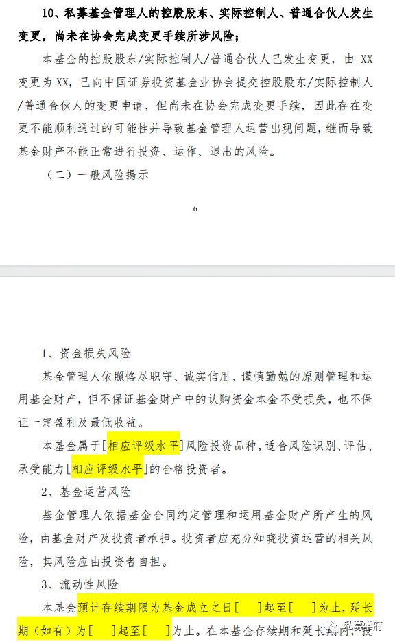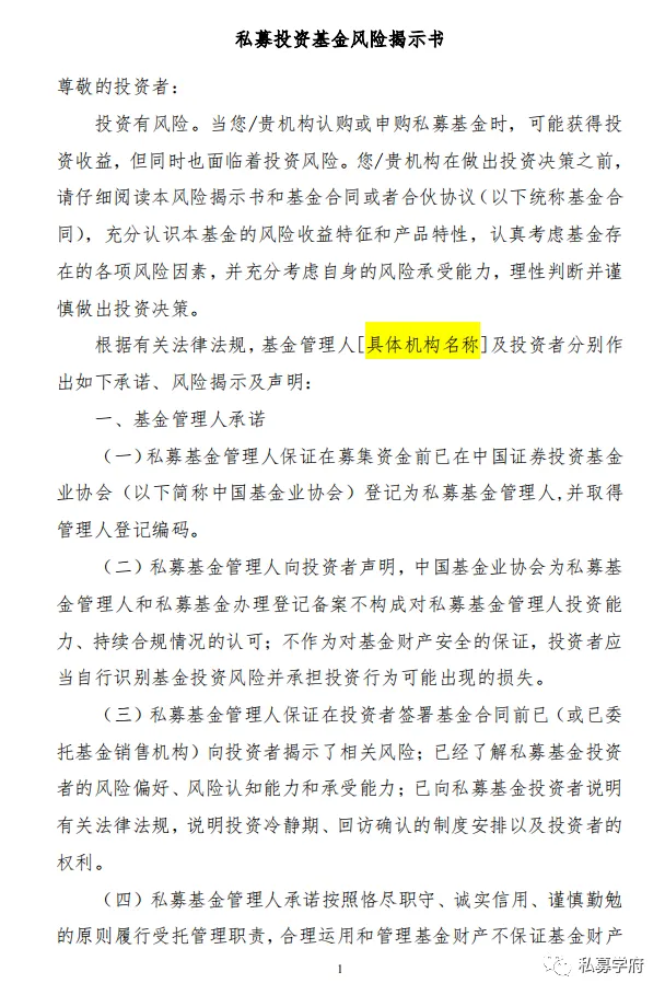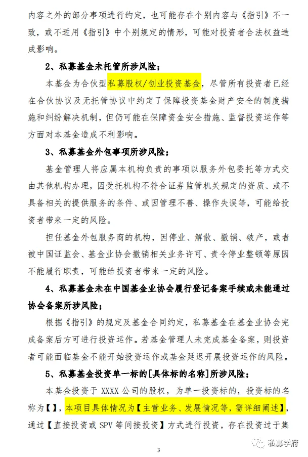 本期精选私募股权(创投)基金风险揭示书模板参考(新规版),含单一投资标的所涉风险,以供读者参考。
