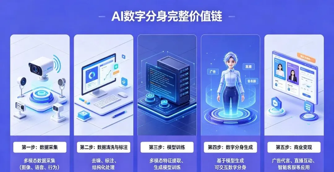 企业服务市场出现千亿级机会。根据最新数据,85%企业计划引入AI员工,但供给缺口达10倍。这催生了AI数字分身服务的创业热潮: