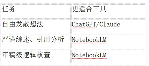 自由发散型思考(ChatGPT/Claude)vs基于资料的严谨推理(NotebookLM)