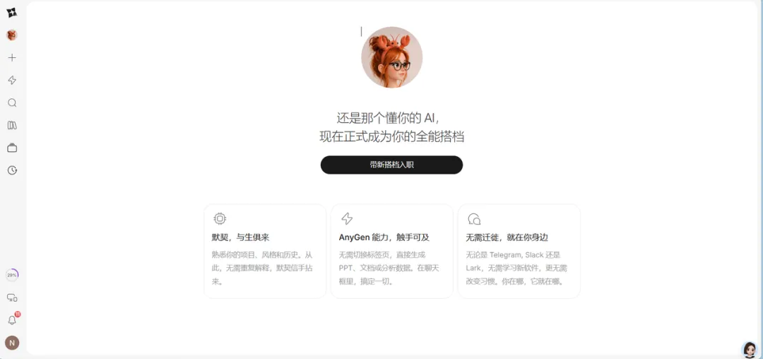 最近鬼使神差的又打开了一下,结果首页直接显示着一行字,「用AnyGen让你的OpenClaw瞬间进阶」。