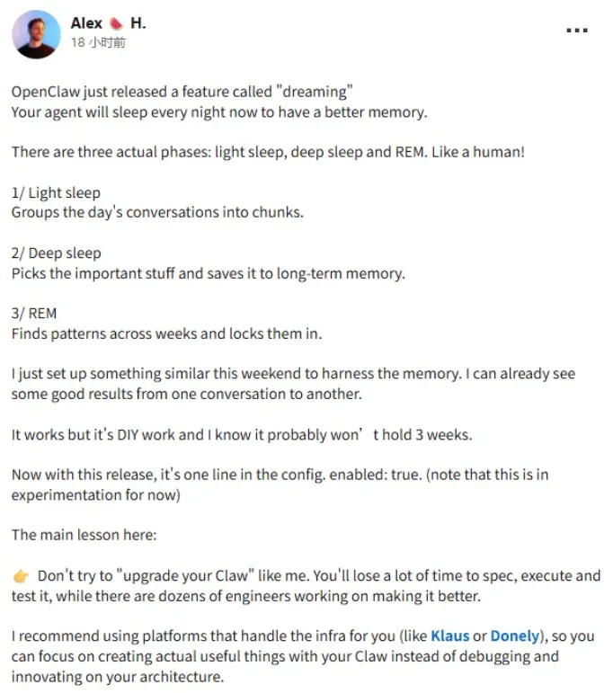你的OpenClaw学会“做梦”了!你的“龙虾”是不是总是会健忘?