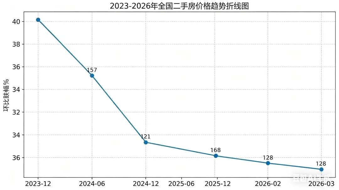 二、全国二手房价格趋势(2023—2026.3,百城环比 %)