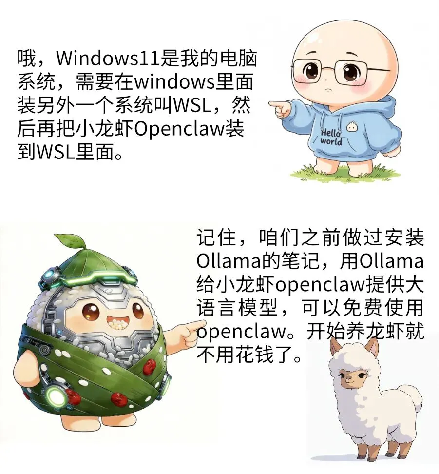 5 分钟学会 OpenClaw 小龙虾安装,这份不折腾笔记必看!用漫画的方式,介绍了最不折腾的在windows系统上安装Openclaw小龙虾的方法。不受网络限制,不用开会员买token。本地部署openclaw,一切尽在自己电脑中。为什么普通人养小龙虾,技术圈大佬都在养羊驼?