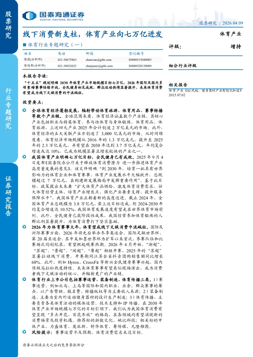 今日免费下载:2026年体育行业专题研究报告