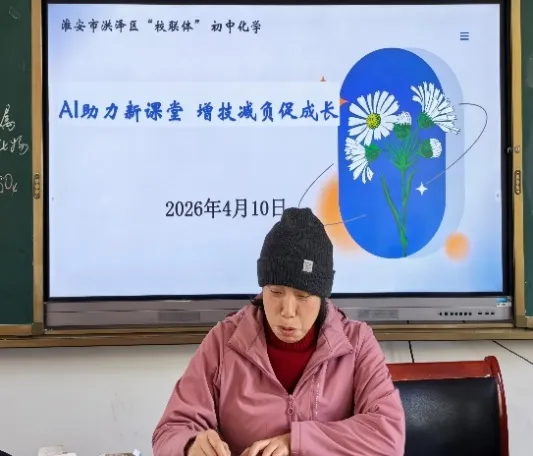 最后,洪泽区兼职化学教研员纪友花老师对本次教研活动进行全面总结。她表示,本次活动紧扣智慧教育发展要求,聚焦中考复习核心痛点,充分展现了 AI 技术与化学复习课深度融合的实践成果。两位执教老师的课堂设计精巧、靶向性强,真正实现了以学定教、减负增效,为全区九年级化学复习课提供了可借鉴、可复制、可推广的优秀范式。同时,纪老师对下一阶段化学教学工作提出明确要求:一是持续深化 AI 教学工具应用,把精准选题、分层训练、实时反馈等功能融入日常复习,切实减轻师生机械训练负担;二是聚焦知识体系建构,强化核心考点梳理、解题模型归纳与答题规范指导,提升复习课的系统性与高效性;三是加强校联体协同教研,共享优质资源、共研备考策略,凝聚复习教学合力,全力助推洪泽区化学教学质量稳步提升。