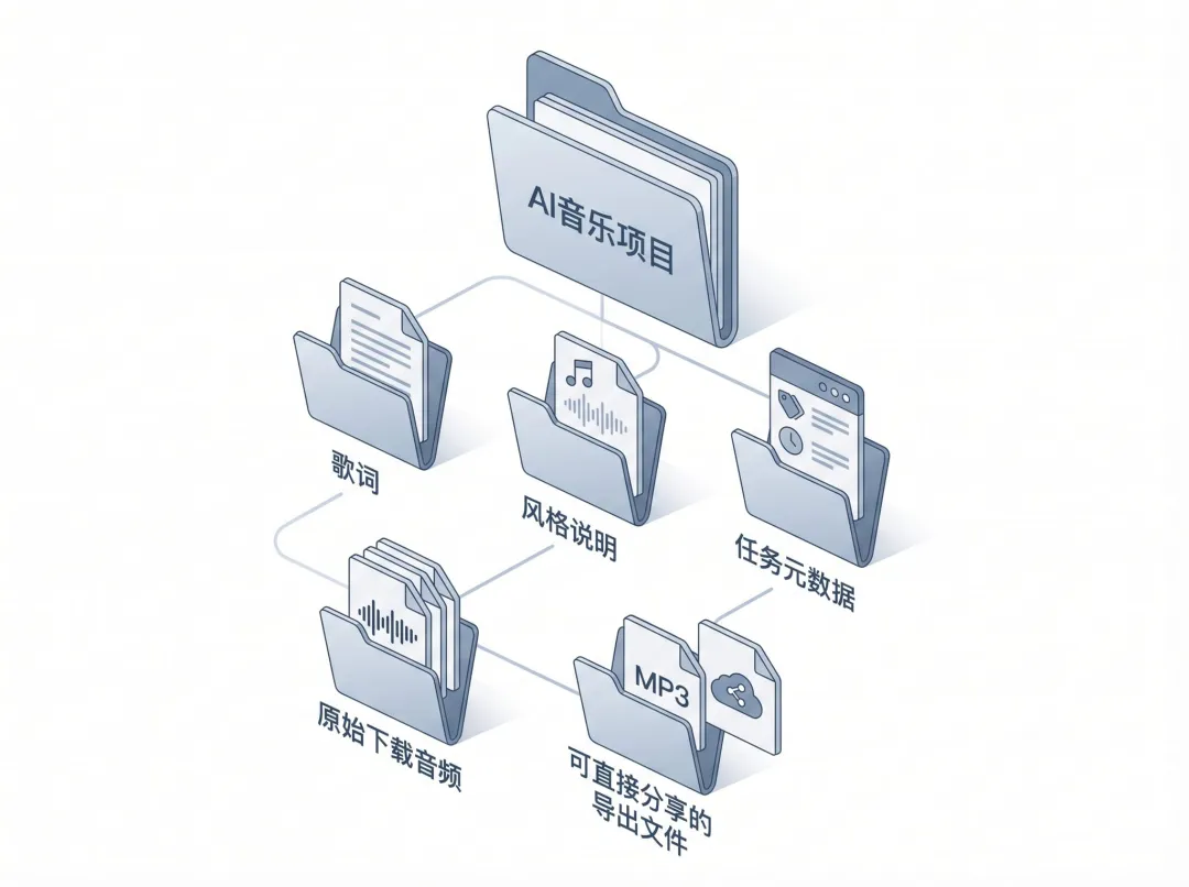 一个音乐项目目录├─ 歌词├─ 风格说明├─ 任务元数据├─ 原始下载音频└─ 可直接分享的导出文件这样做最大的好处,不是看起来整齐,而是你后面真的还能继续用。