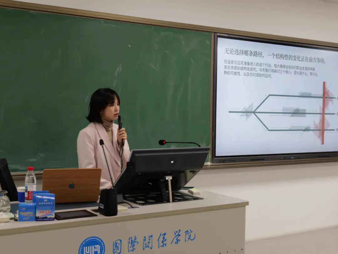 在技术快速更迭、就业格局持续变化的当下,人工智能对法律行业的冲击,已经不再只是一个抽象话题。对于正在思考升学、就业与职业发展的法学生而言,AI究竟会怎样改变法律工作的内容、法律人的能力结构以及未来的职业路径,正成为越来越无法回避的问题。4月7日,国际关系学院法学院法学前沿系列讲座顺利举行。本次讲座特邀杨蔚曦老师主讲,围绕人工智能对法律职业的深层影响、法律工程师这一新兴岗位的形成逻辑,以及未来法律就业市场的变化趋势展开分享。杨老师结合一线实务经验,从企业法务、法律科技应用和职业发展现实出发,带领同学们重新审视“法律人”这一身份在技术时代中的位置,也为大家理解未来法律职业的变化提供了更具现实感的视角。